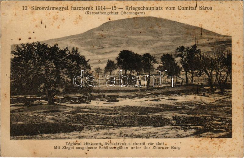 Zboró, Zborov; Téglával kifalazott lövészárkok a zborói vár alatt. Sár... https://www.darabanth.com/en/513-Auction-philately-postcards-numismatics-artwork-books-collectibles-jewelry/513.0/Postcards/Slovakia~513/Zboro-Zborov-Teglaval-kifalazott-loveszarkok-a-zboroi-var-alatt-Sarosvarmegyei-harcterek~II3474090