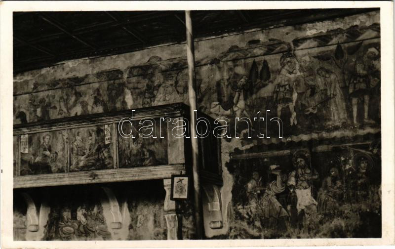1941 Gelence, Gälänz, Ghelinta; 600 éves római katolikus templom belső freskókkal. Lénárd fényképész kiadása / Catholic church interior with frescos