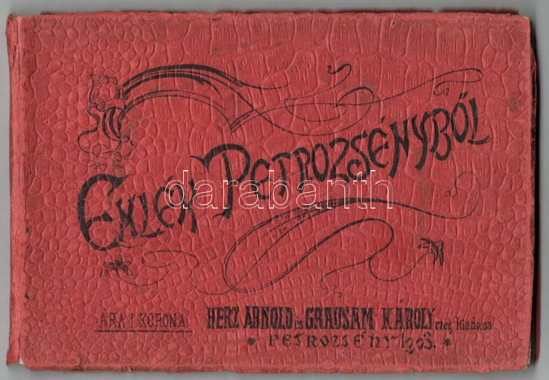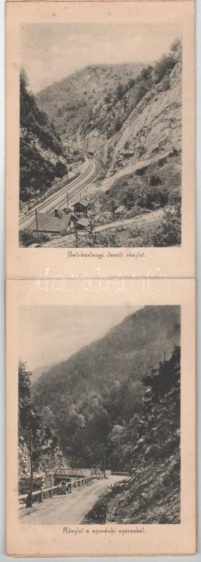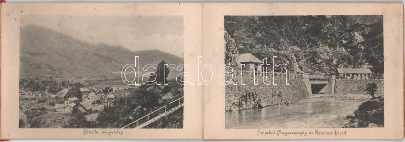 Petrozsény, Petrosani; Emlék Petrozsényből. Herz Arnold és Grausam Károly czég kiadása 1903. - Nem képeslapos leporellófüzet 16 képpel (vasútállomás, szénosztályozó, nyugati főtárna, iparvasút, gőzmozdony, igazgatósági lak, Petrillai bányatelep, román-magyar határhíd, Boli barlang vasúti alagút, havasi oláhok) / non-postcard leporello booklet with 16 pictures (railway station and tunnel, industrial railway, locomotive, Petrila mine, Romanian-Hungarian border bridge, Romanian folklore)