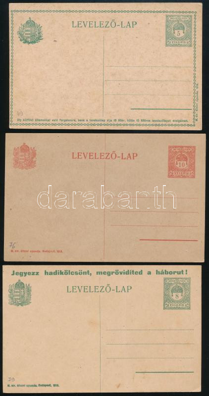 1912-1918 3 db használatlan díjjegyes levelezőlap (Hodobay 49, 76, 79)