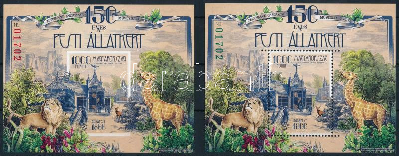 2016 150 éves a Pesti Állatkert túlfogazott és vágott blokk azonos sorszámmal (27.000)