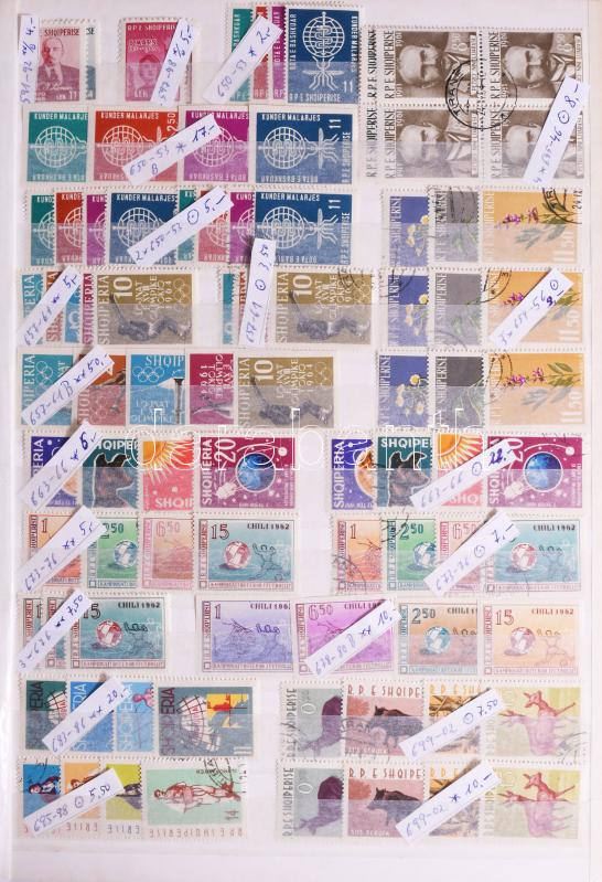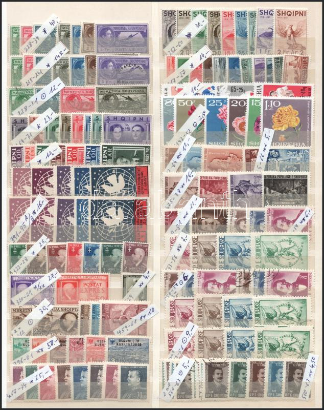 Albánia 1930-1982 Összeállítás 5 db A/4-es berakólapon, benne vágott bélyegek is (Mi EUR 2.000.-)
