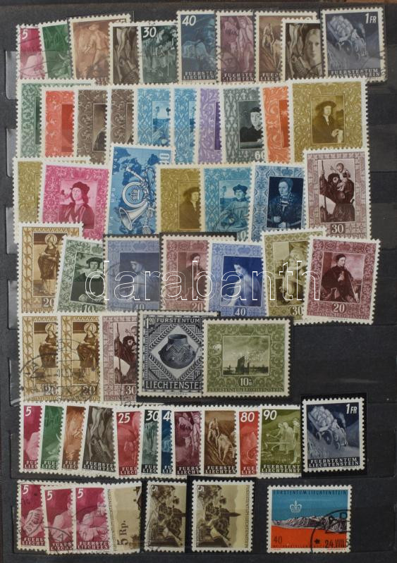 Liechtenstein tétel, benne 1.100 db bélyeg, sorokkal, több példányokka...