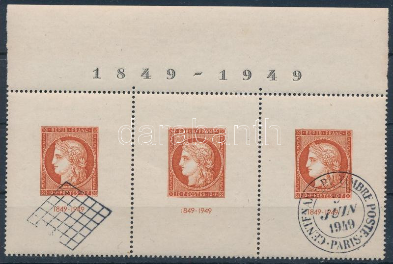 https://www.darabanth.com/en/513-Auction-philately-postcards-numismatics-artwork-books-collectibles-jewelry/513.0/Selected-items-and-collections-Worldwide/Single-worldwide-issues-at-a-very-low-starting-price~8/Franciaorszag-1949-Belyeg-kiallitas-blokk-az-teljes-ivbol-szarmazo-ivszeli-harmascsikba~II3467243