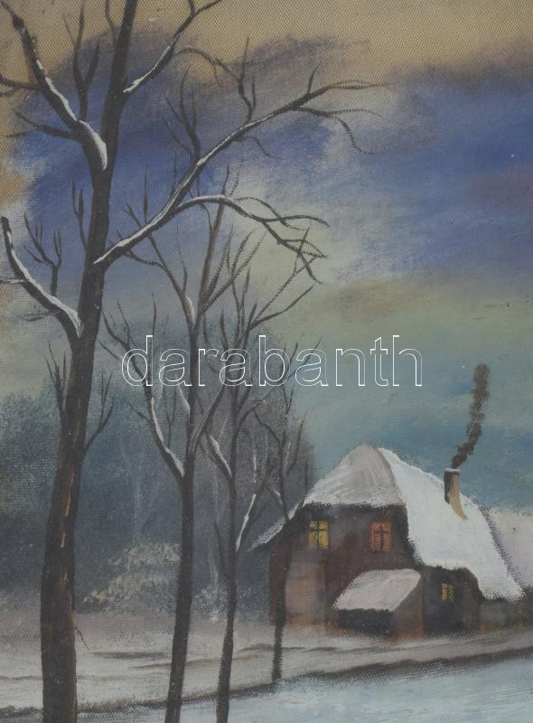 A. Degréé jelzéssel: Téli táj, Olaj, karton, üvegezett, kissé sérült k...