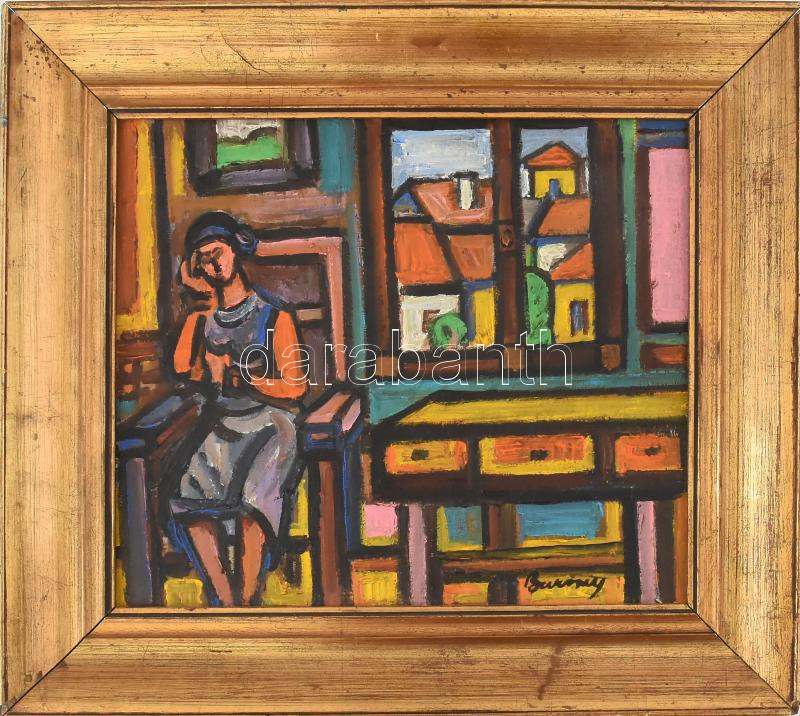 Barcsay (?) jelzéssel: Hölgy enteriőrben. Olaj, vászon, kartonon. Deko...