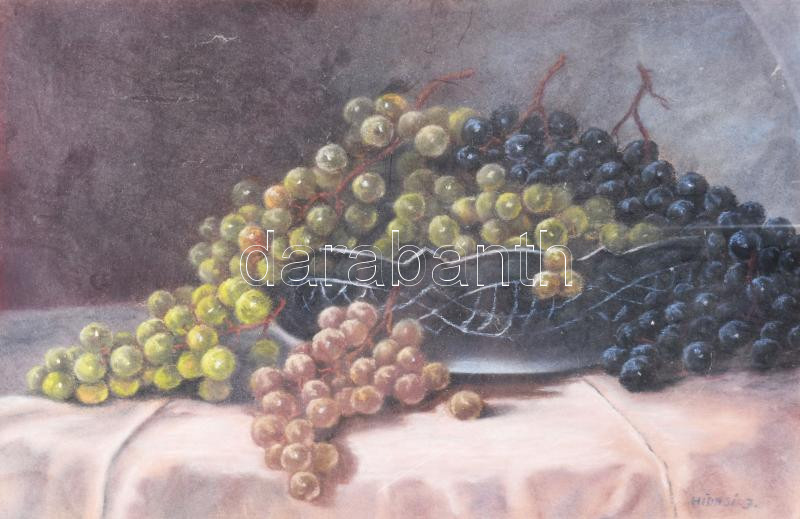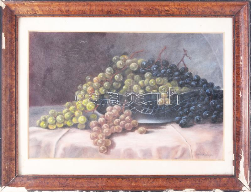 Hidasi J. jelzéssel: Csendélet szőlőkkel. Pasztell, papír. Üvegezett, ...