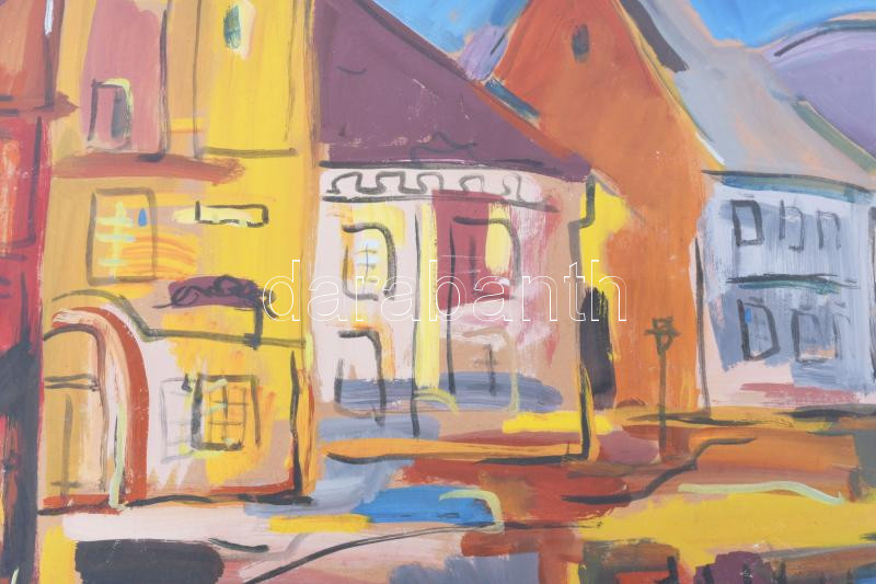 Jelzés nélkül: Utcarészlet. Olaj, papír. 50×63 cm. Üvegezett, kissé sé...