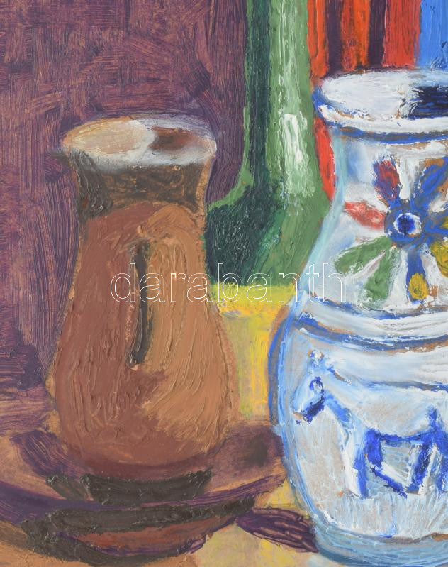 Gerő András (1933-): Csendélet virágos köcsöggel. Olaj, farost., Jelze...