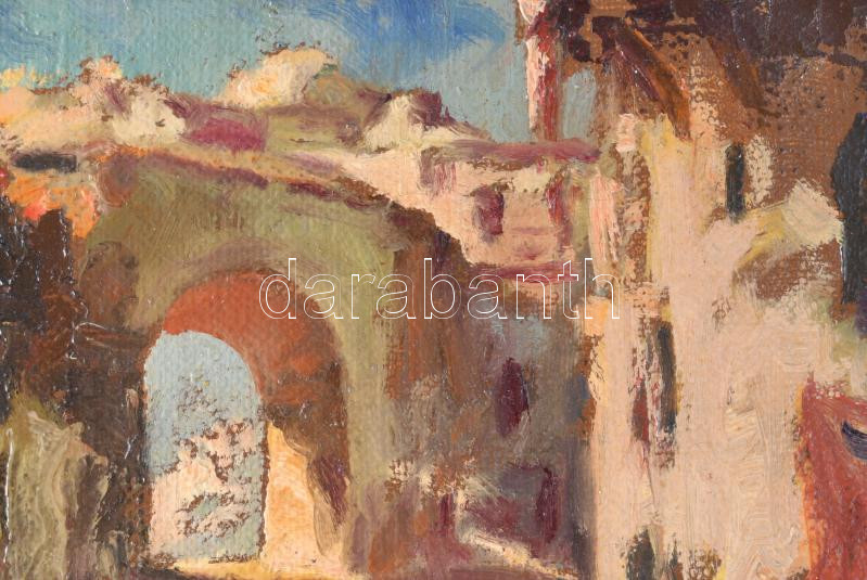 Péczely Antal (1891-1944): Napos utca. Olaj, karton, jelezve balra len...