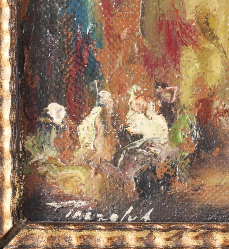 Péczely Antal (1891-1944): Napos utca. Olaj, karton, jelezve balra lent. Dekoratív, kissé kopott fakeretben. 13,5×21 cm