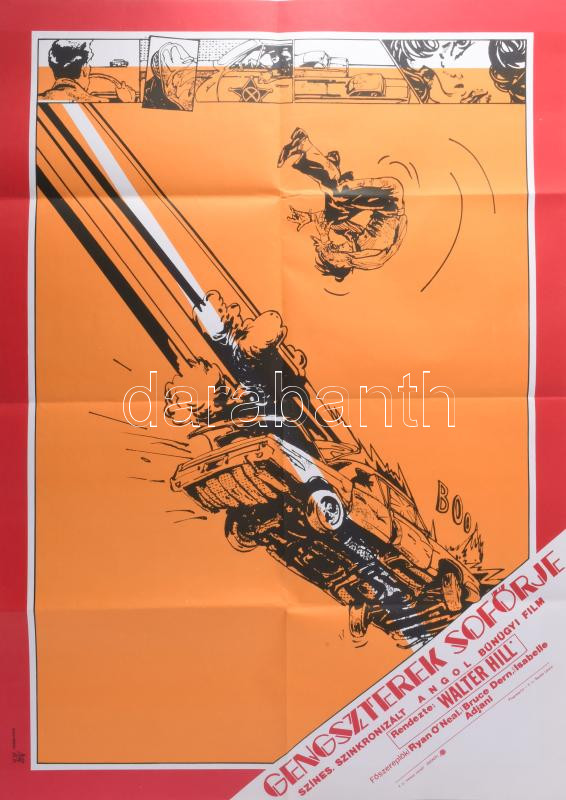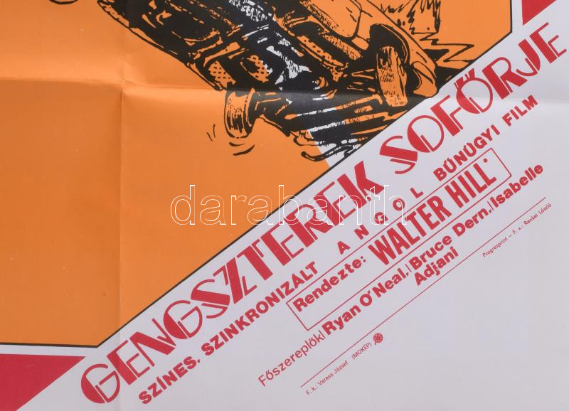 1980 Gengszterek sofőrje, Ryan O'Neal, Bruce Dern, Isabelle Adjani, filmplakát, moziplakát. Papír, Bányai István grafikája, jelzett a plakáton (Atelier/Bányai), Progresprint, hajtásnyomokkal, 84x59,5 cm