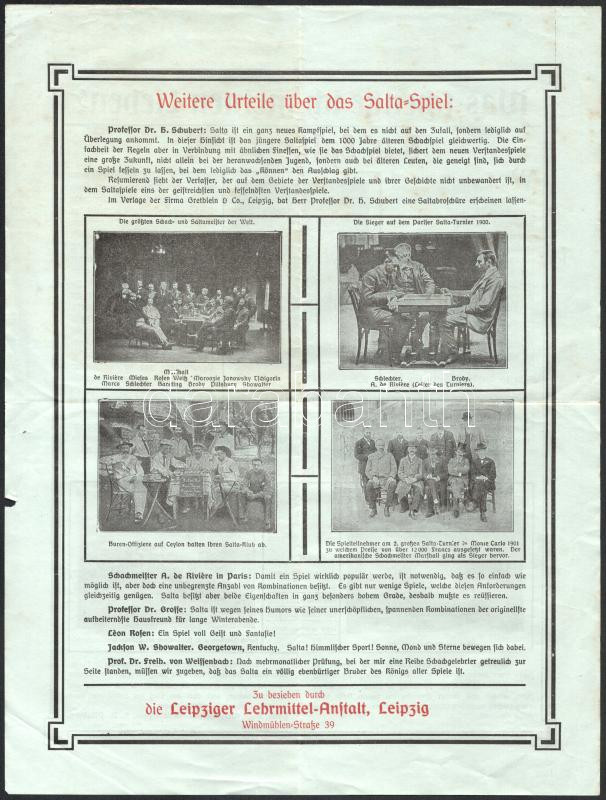 1900 Salta játék ( kétjátékos absztrakt stratégiai társasjáték, amelye... https://www.darabanth.com/en/514-Auction-philately-postcards-numismatics-artwork-books-colletibles-jewelry/515.0/Art-and-other-collectibles/Advertisement~73/1900-Salta-jatek-ketjatekos-absztrakt-strategiai-tarsasjatek-amelyet-Konrad-Heinrich-Bu~II3461844