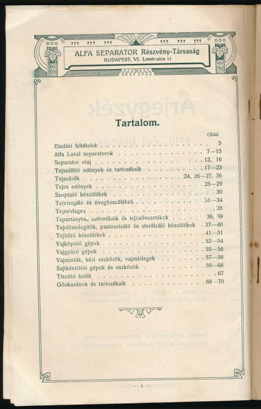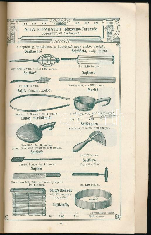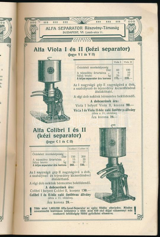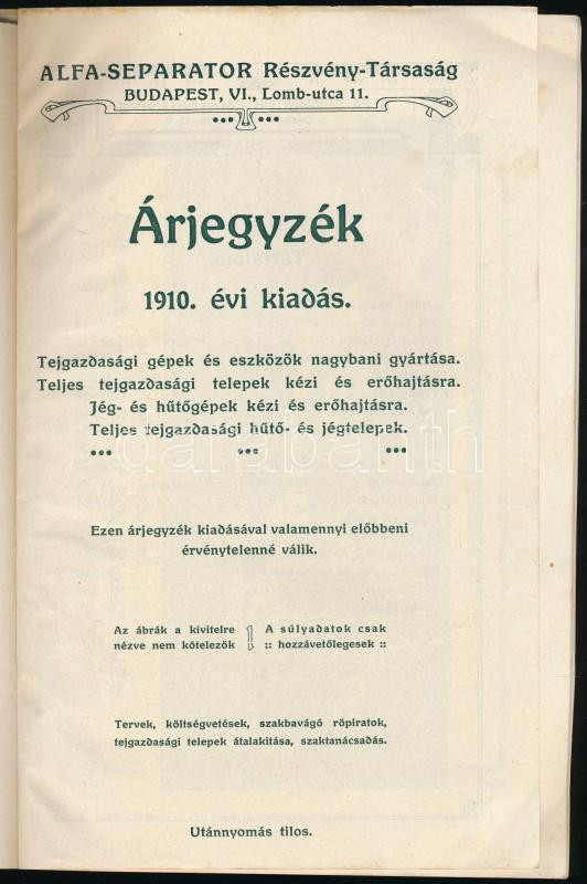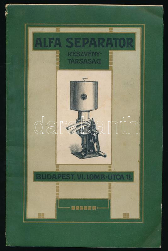1910 Alfra Separator Rt. Árjegyzék, 1910. évi kiadás. (Tejgazdasági gé... https://www.darabanth.com/en/514-Auction-philately-postcards-numismatics-artwork-books-colletibles-jewelry/515.0/Art-and-other-collectibles/Advertisement~73/1910-Alfra-Separator-Rt-Arjegyzek-1910-evi-kiadas-Tejgazdasagi-gepek-es-eszkozok-Jeg~II3479823
