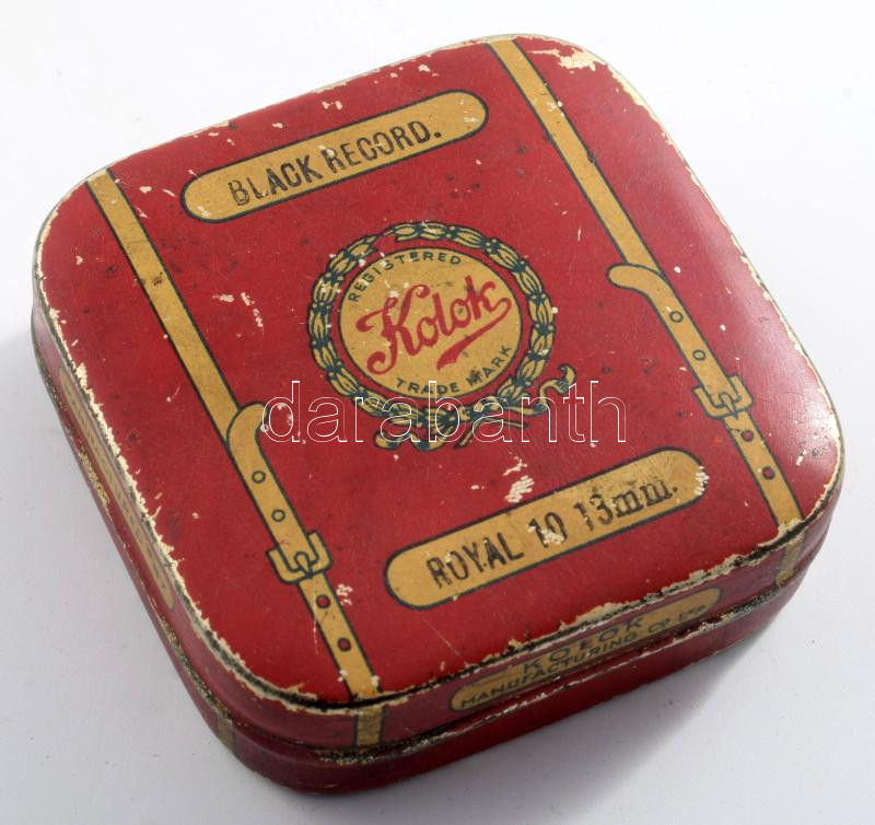 Kolok Black Record Royal 10 13mm fém doboz, kopásnyomokkal, 6,5×6,5×2 ...