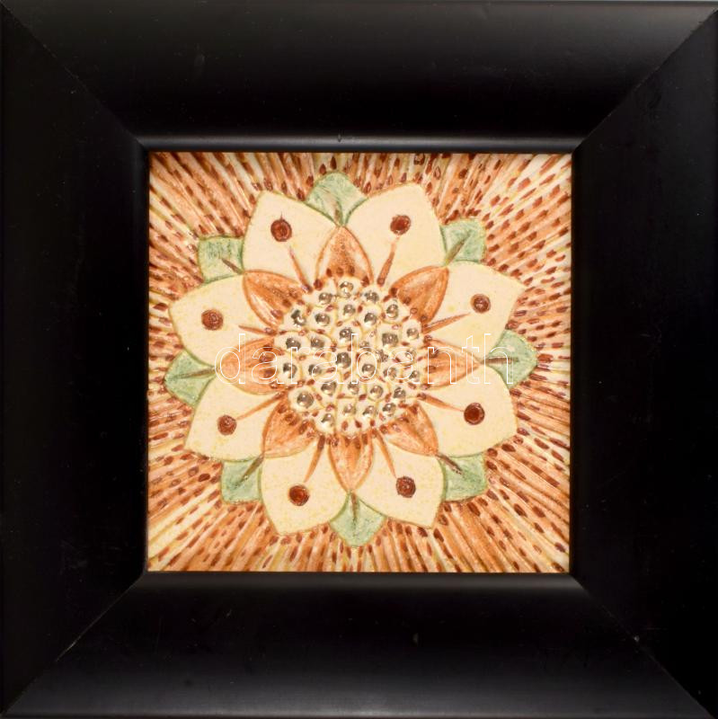 2016 Bukrán Edit (1957-) Virágmotívum. Kerámia kép, keretben, jelzett,...
