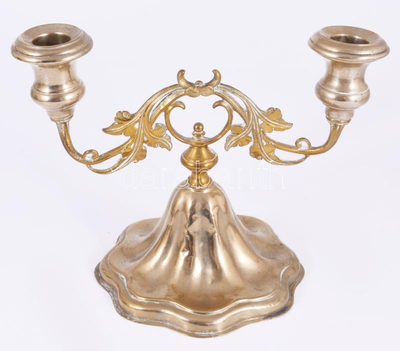 Hermann aranyozott alpakka gyertyatartó. Jelzett, hibátlan 22x17 cm