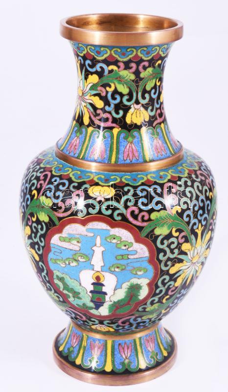 Kínai cloisonne réz váza, jó állapotban, m: 18,5 cm