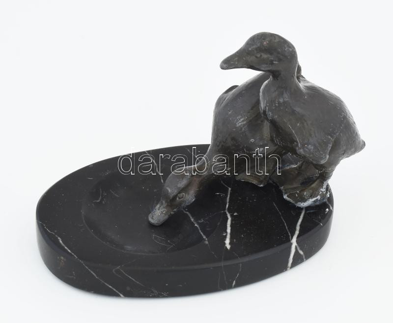 Ón kacsapár figurával díszített márvány ékszertartó, 16x12 cm