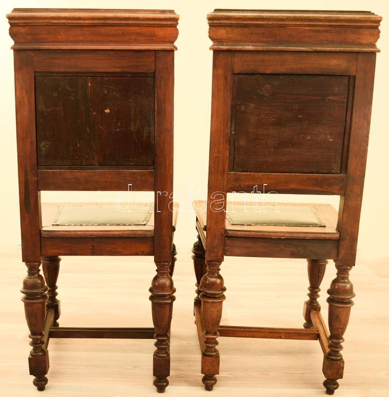 Description: Ónémet támlás szék pár. cca 19. sz. közepe, német, gazdagon faragott támlával és lábakkal, cserélt ülőrésszel, 1-1 kis sérüléssel, de összességében jó állapotban, 98x47x46 cm /// KIZÁRÓLAG SZEMÉLYES ÁTVÉTEL, NEM POSTÁZZUK! / ONLY PERSONAL COLLECTION AT OUR OFFICE
