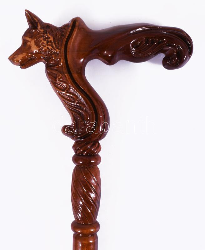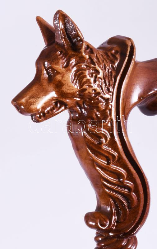 Pácolt fa sétabot, díszes kutyafejes markolattal, újszerű, h: 94 cm