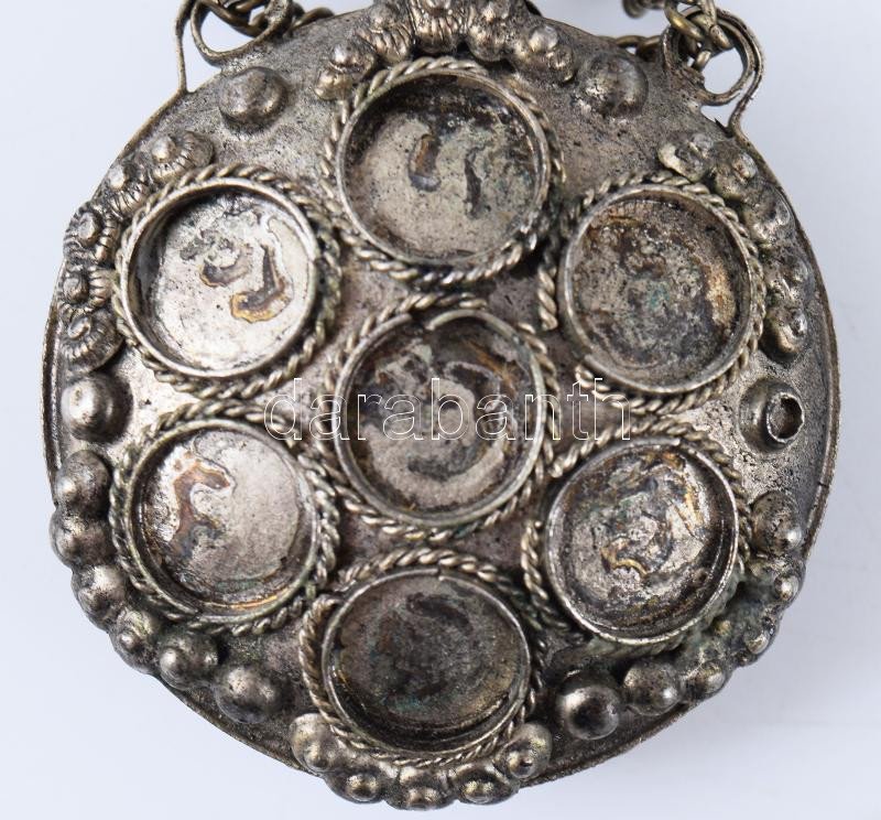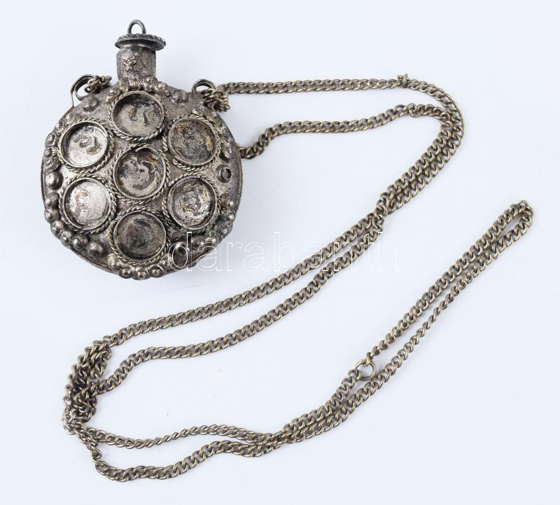 Parfűmtartó, fém, kövek nélkül, láncon. 5 cm