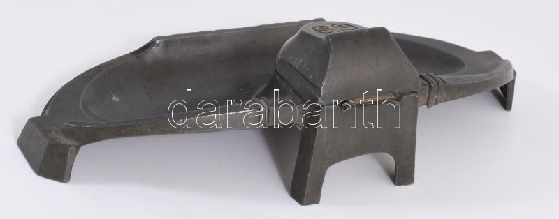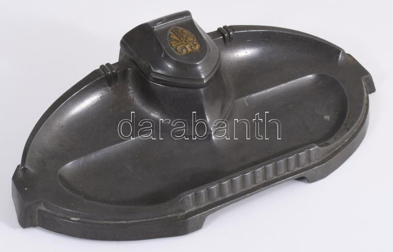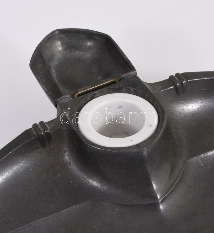 Szecessziós ón tintatartó porcelán tégellyel, jó állapotban, 20x10 cm