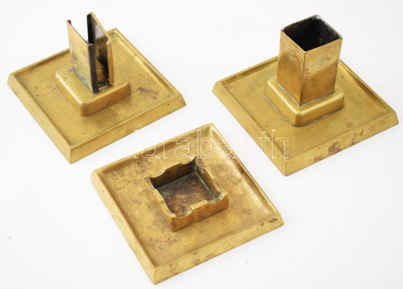 cca 1910, Gabrys György Budapest háromrészes bronz cigarettázó szett, ...