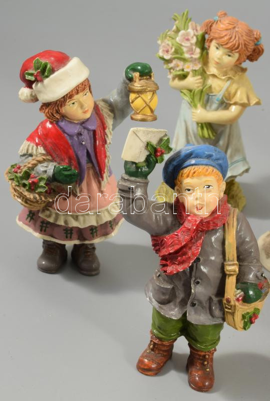 2 darab karácsonyi fiú és lány figura asztaldísz, műgyanta, hibátlan, m: 10,5 cm