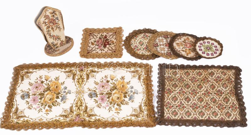 8 darabos asztalteríték szett, terítők és szalvétatartó, jó állapotban.
