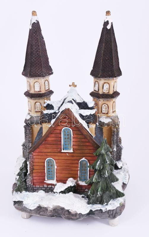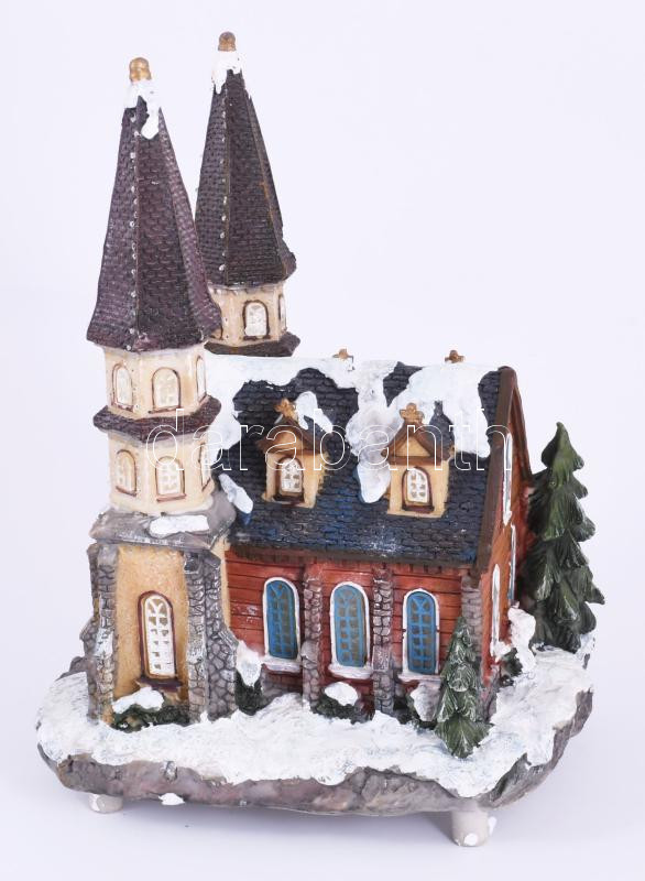 Elemmel működő világító és zenélő karácsonyi templom asztaldísz, haszn...