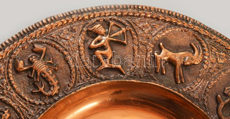 Horoszkópos réz falitál, jelzés nélkül, d: 19 cm