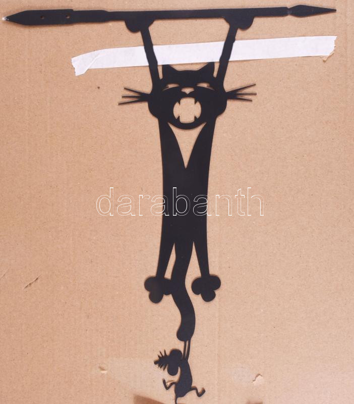 Kapaszkodó macska és egér fémlemez faldekoráció, hibátlan, 30x24 cm