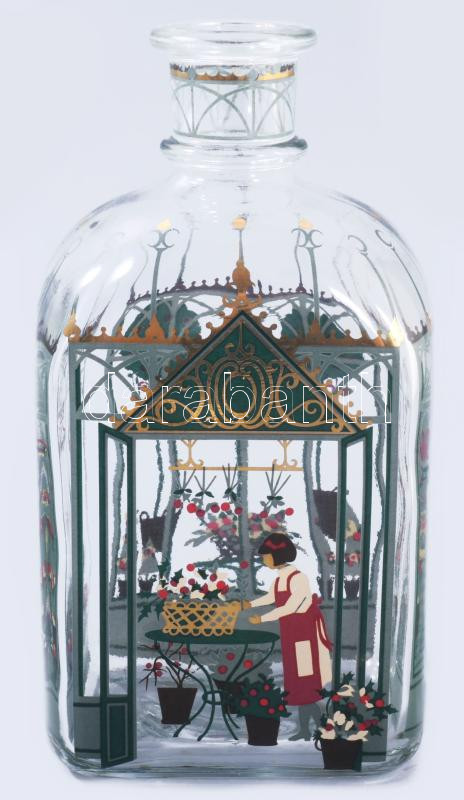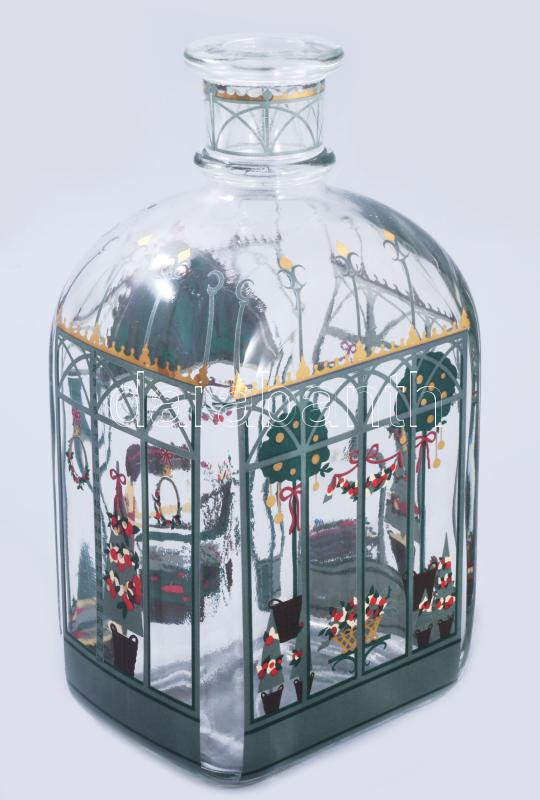 Karácsonyi mintával festett italos palack, hibátlan, m: 18 cm