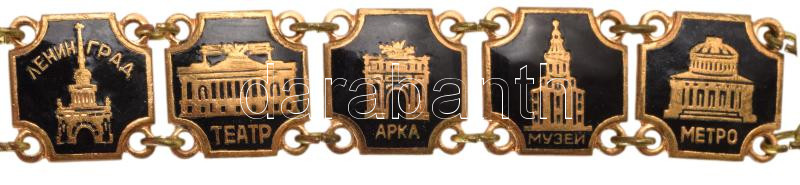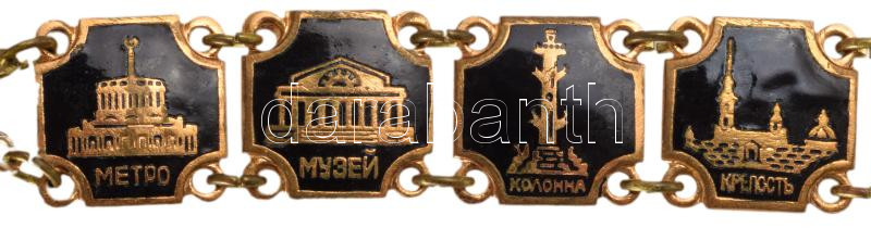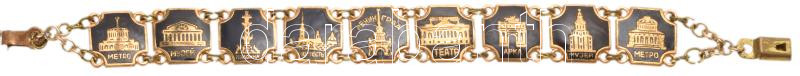 Retro orosz karkötő, ismert épületek képeivel, h: 16 cm