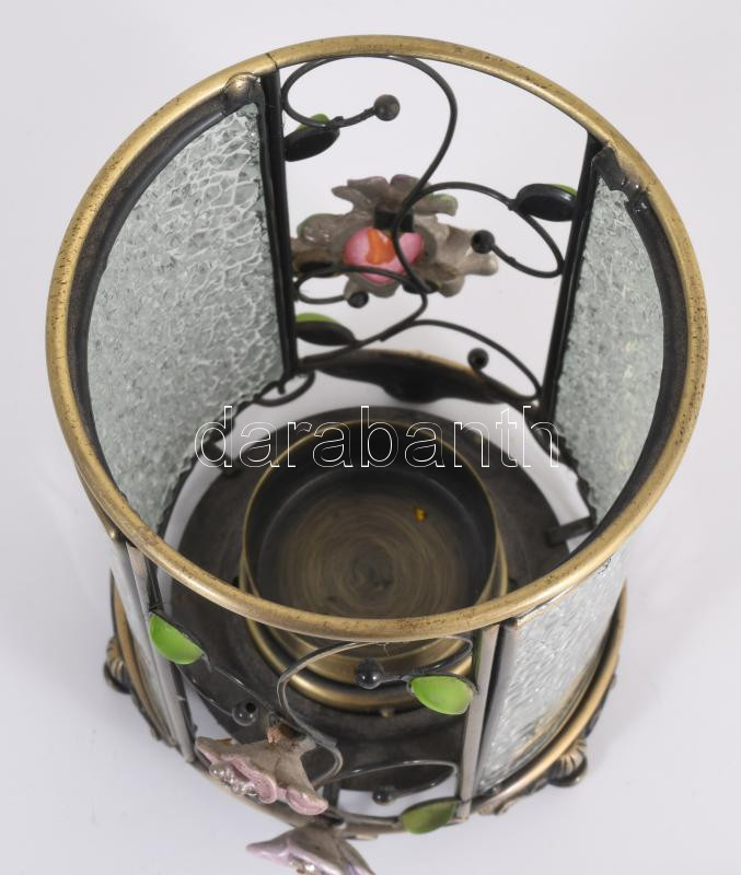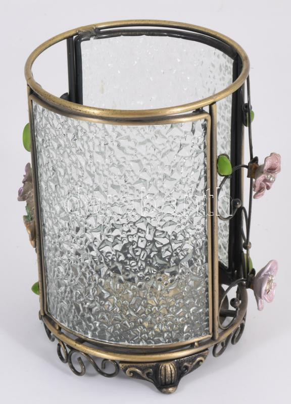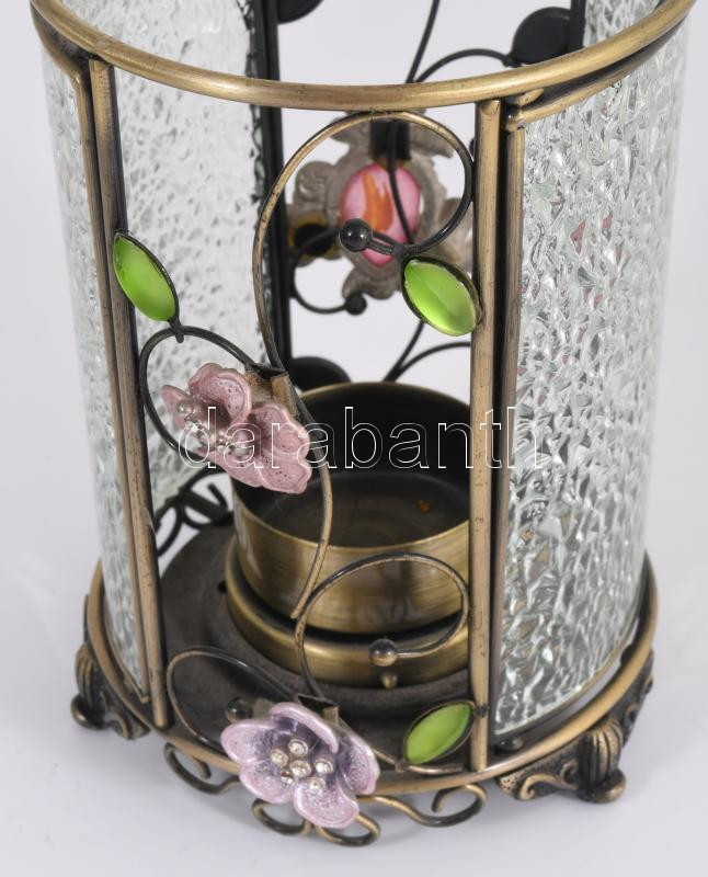 Virágokkal dekorált mécsestartó, hibátlan, m: 13 cm