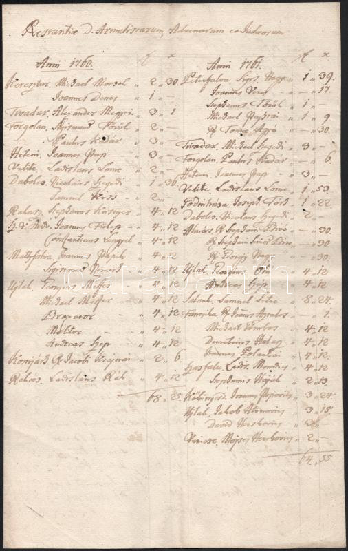 1763 Adóhátralék összeírás armalista nemesek, zsidók felsorolásával Ká...