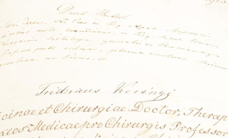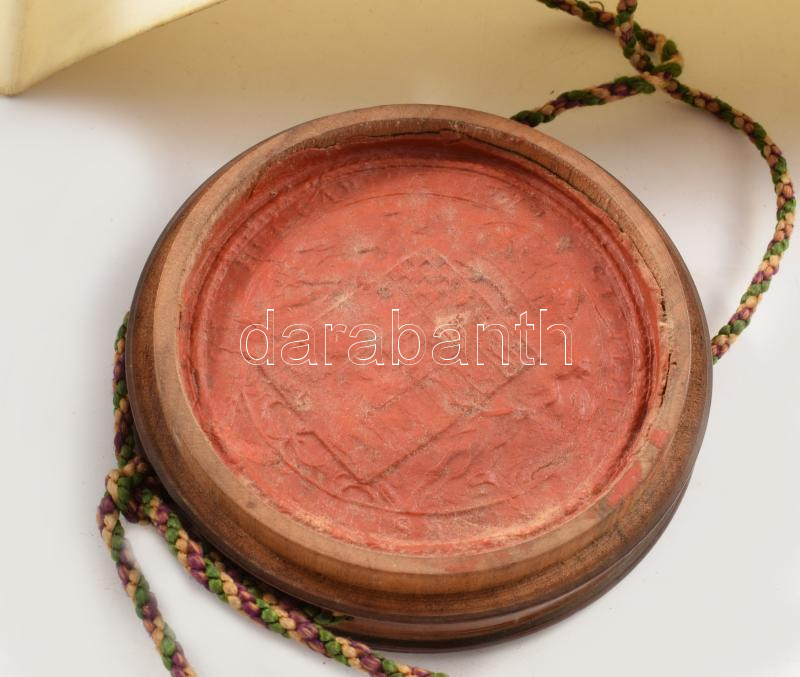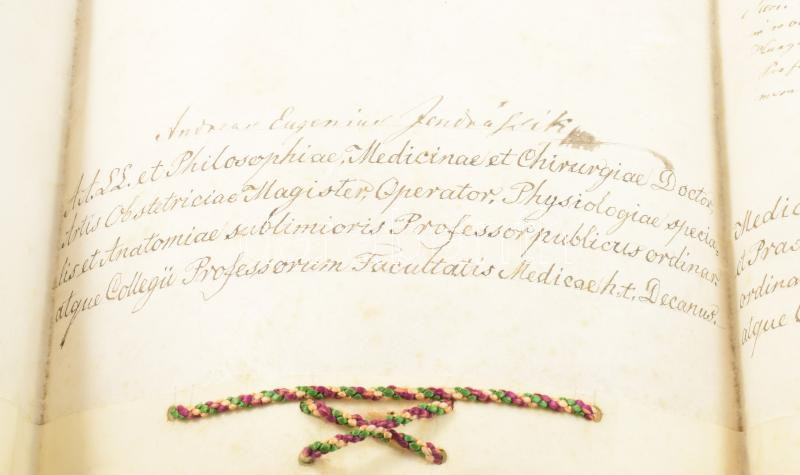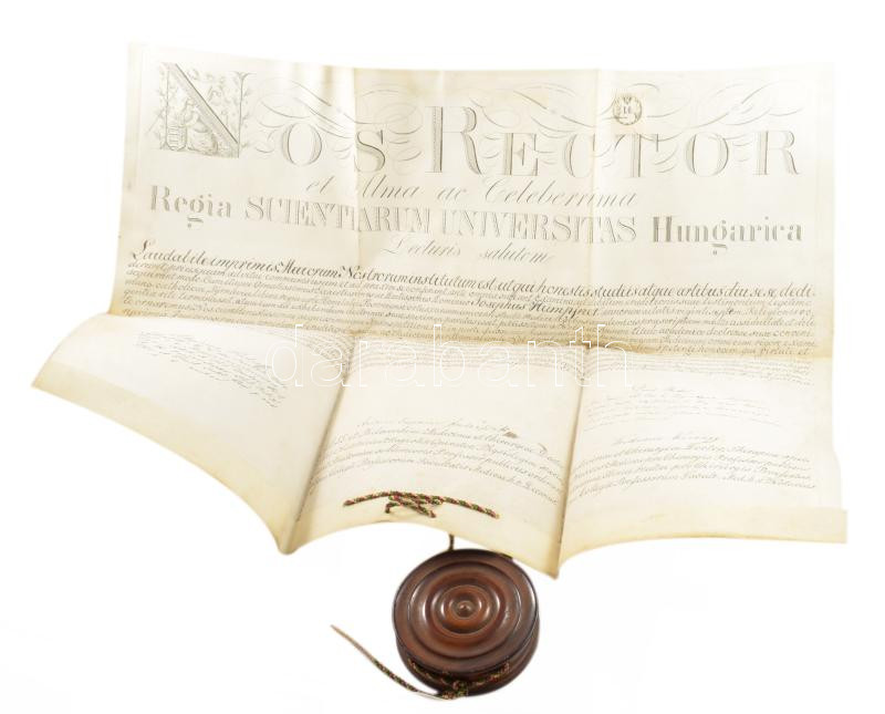 1867 Hümpfner József kalocsai főorvos, Kismarty-Lechner Loránd apósának pergamen orvosi diplomája függő viaszpecséttel