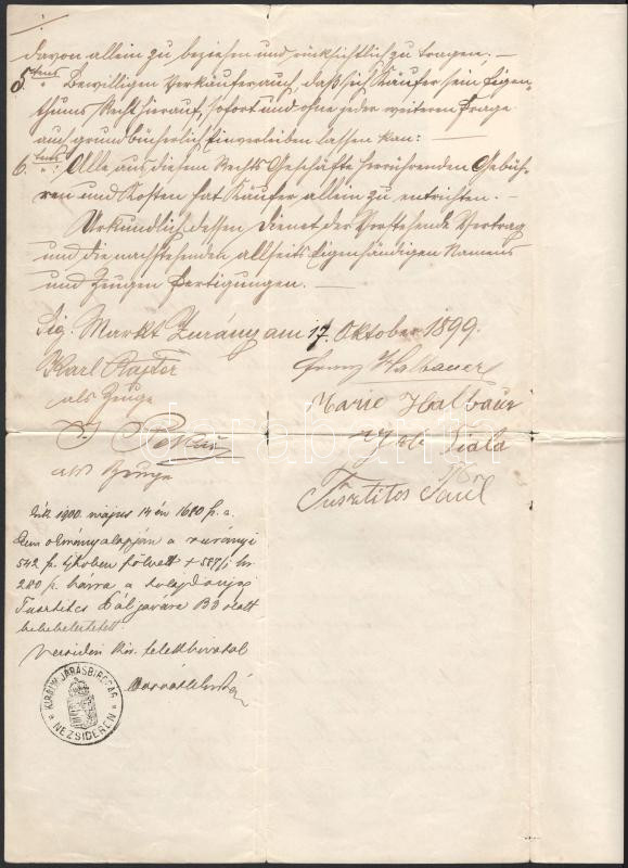 https://www.darabanth.com/en/514-Auction-philately-postcards-numismatics-artwork-books-colletibles-jewelry/515.0/Art-and-other-collectibles/Documents~68/1899-Zurany-3Cem3EZurndorf3Cem3E-Burgenland-A-adasveteli-szerzodes-hazra-1K-illetekbelye~II3450028