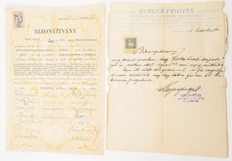 1905-1948 Kalkó László drogista iratai: munkáltatói igazolások különbö... https://www.darabanth.com/en/514-Auction-philately-postcards-numismatics-artwork-books-colletibles-jewelry/515.0/Art-and-other-collectibles/Documents~68/1905-1948-Kalko-Laszlo-drogista-iratai-munkaltatoi-igazolasok-kulonbozo-cegektol-Wimme~II3482554