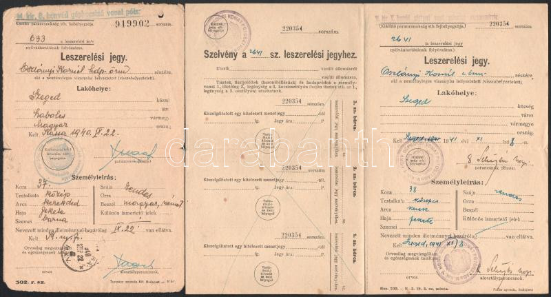 https://www.darabanth.com/en/514-Auction-philately-postcards-numismatics-artwork-books-colletibles-jewelry/515.0/Art-and-other-collectibles/Documents~68/1940-1941-4-db-katonai-irat-egy-szemely-reszere-Oszlanyi-Kornel~II3478184