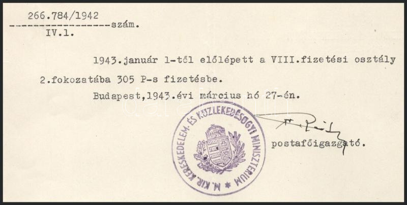 1940 Varga József (1891-1956) kereskedelem- és közlekedésügyi, Corvin-... https://www.darabanth.com/en/514-Auction-philately-postcards-numismatics-artwork-books-colletibles-jewelry/515.0/Art-and-other-collectibles/Documents~68/1940-Varga-Jozsef-1891-1956-kereskedelem-es-kozlekedesugyi-Corvin-koszoruval-1942-es-Ko~II3456272