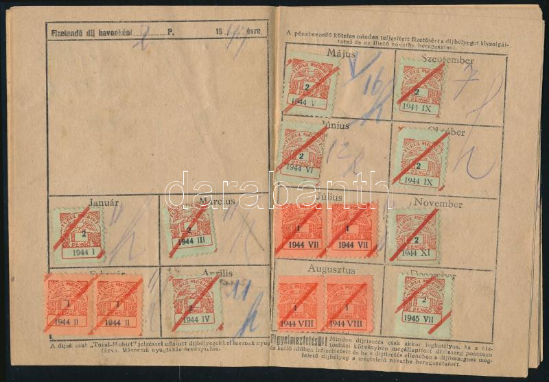 1943-1945 Turul-Magyar Országos Biztosító Intézet R.T. díjbefizetési k...