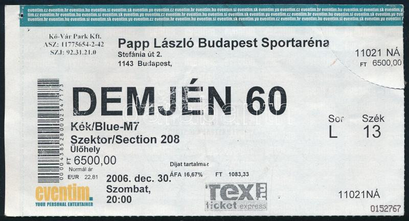 2006 "Demjén 60" koncertjegy, Papp László Sportaréna