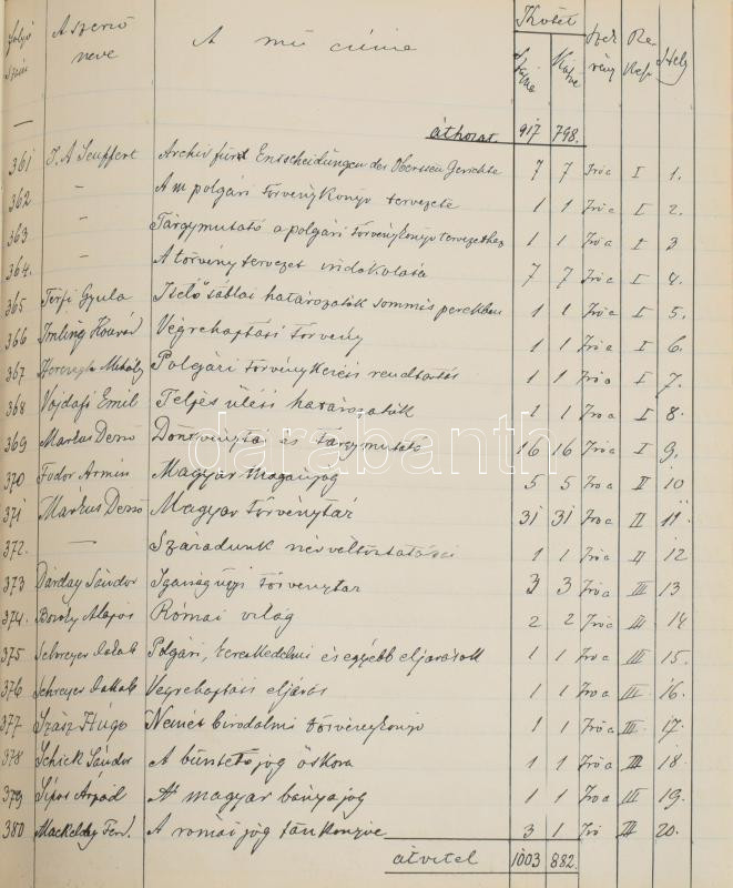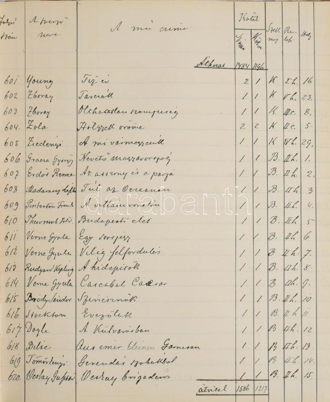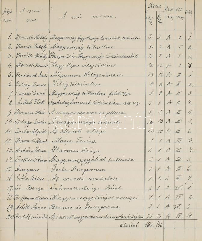 ca 1900 800 könyvcímet tartalmazó leltárlista magyar vegyes tárgyú kön...