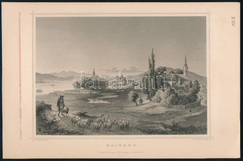 Description: Vác, Waitzen Ludwig Rohbock (1824-1893) német grafikus részletgazdag acélmetszete a "Magyarország és Erdély eredeti képekben" című illusztrált topográfiai műből.