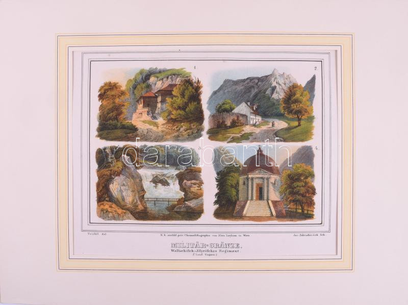 cca 1860 Herkulesfürdő, Militär-Gränze Wallachisch-Illirisch Regiment (Land Ungarn), Jos. Zahradniczek litográfia. paszpartuban, 18×22 cm