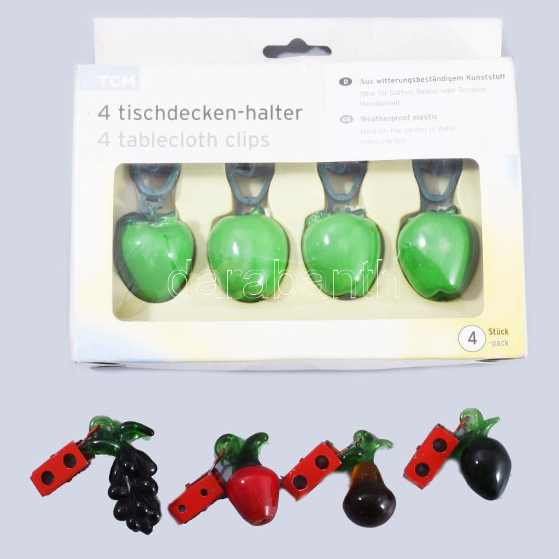 8 darab gyümölcsmintás asztalterítő csíptető, ebből 4 darab üveg