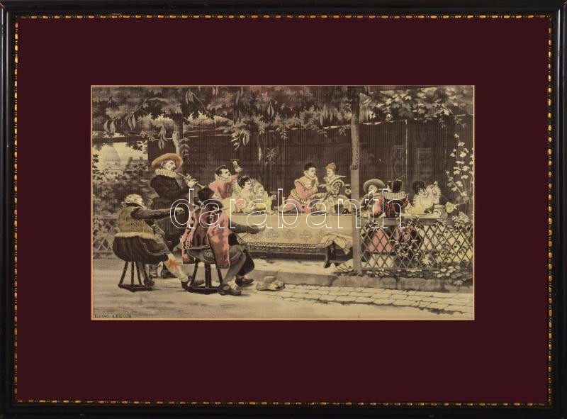 Alexandre-Louis Leloir (1843-1884) festménye után készült selyemkép, paszpartuban, üvegezett fakeretben, látható: 16,5x27 cm, külső méret: 30x40 cm