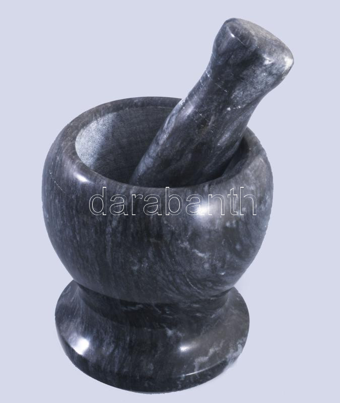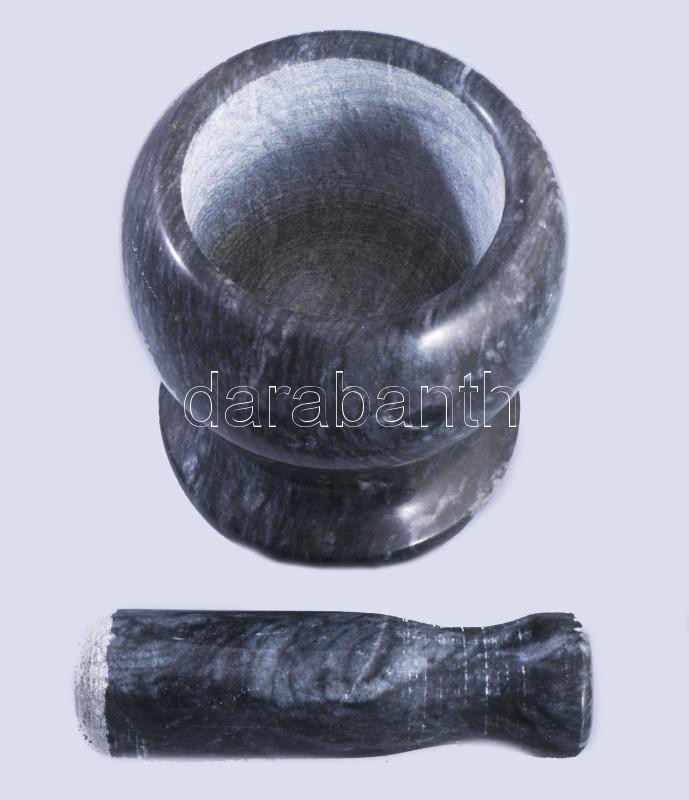 Márvány mozsár, m: 10,5 cm, törő h: 12 cm